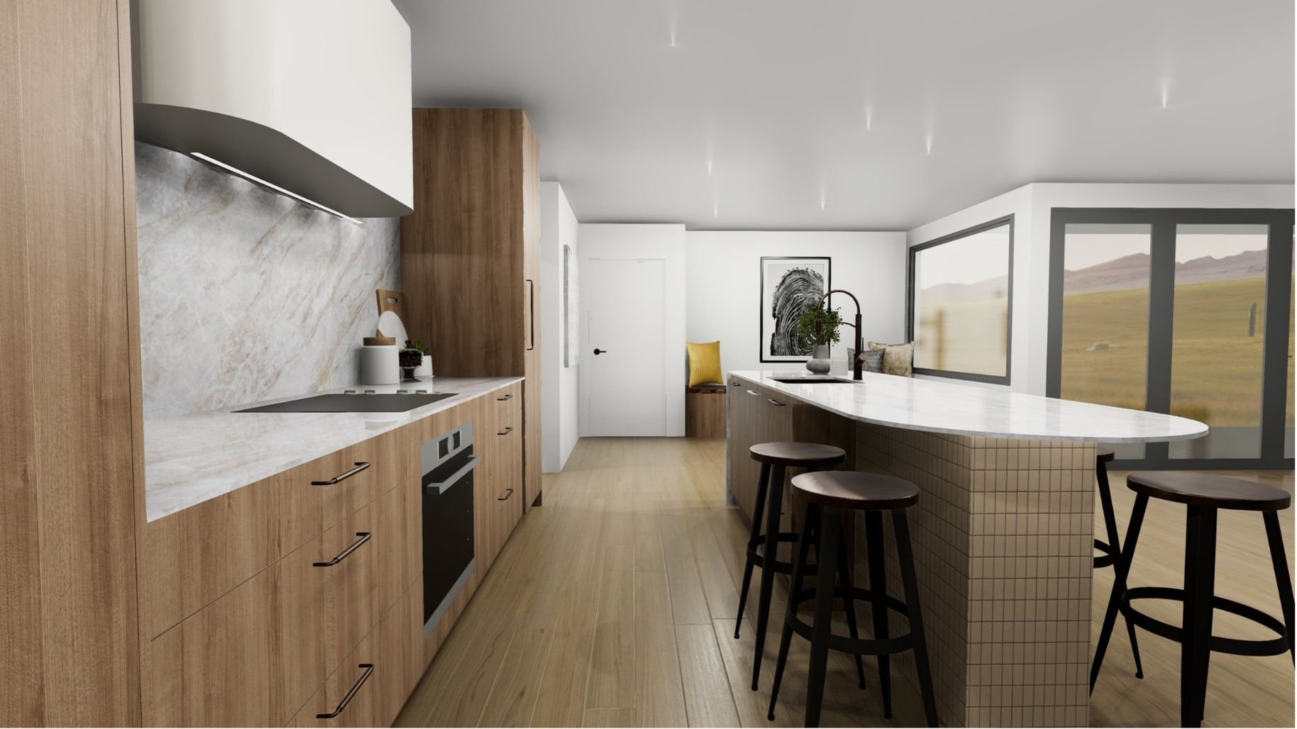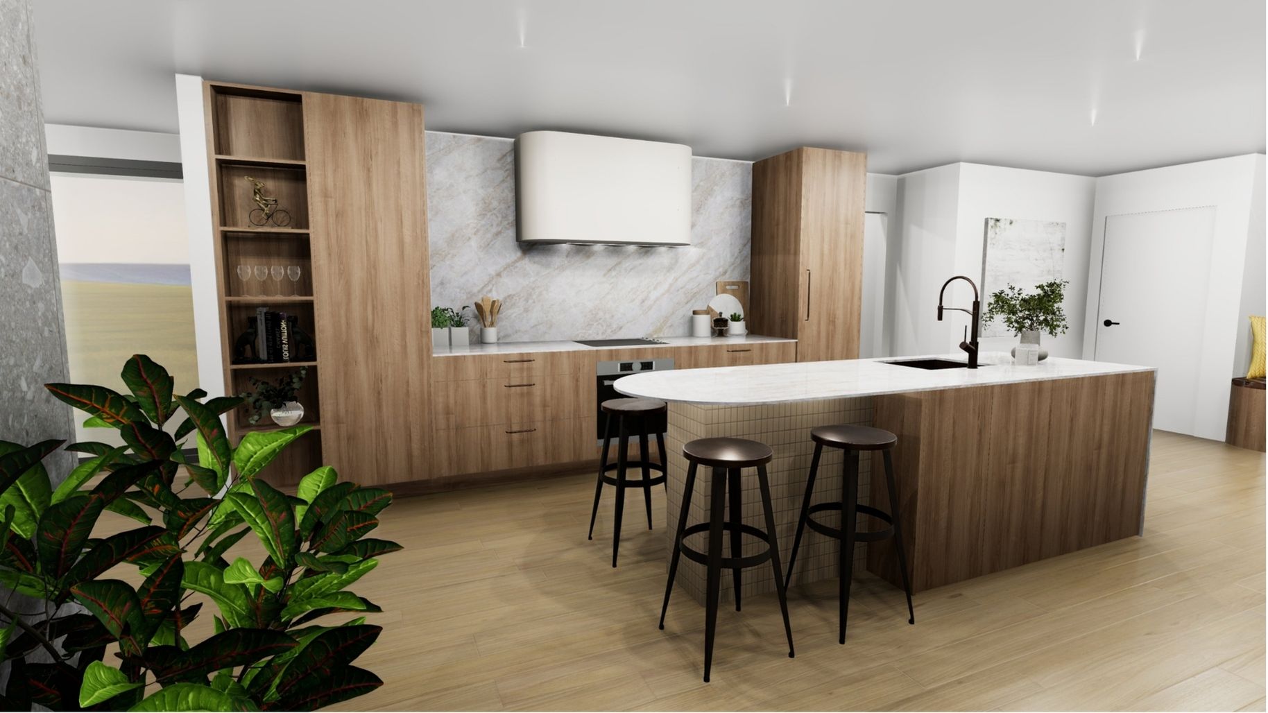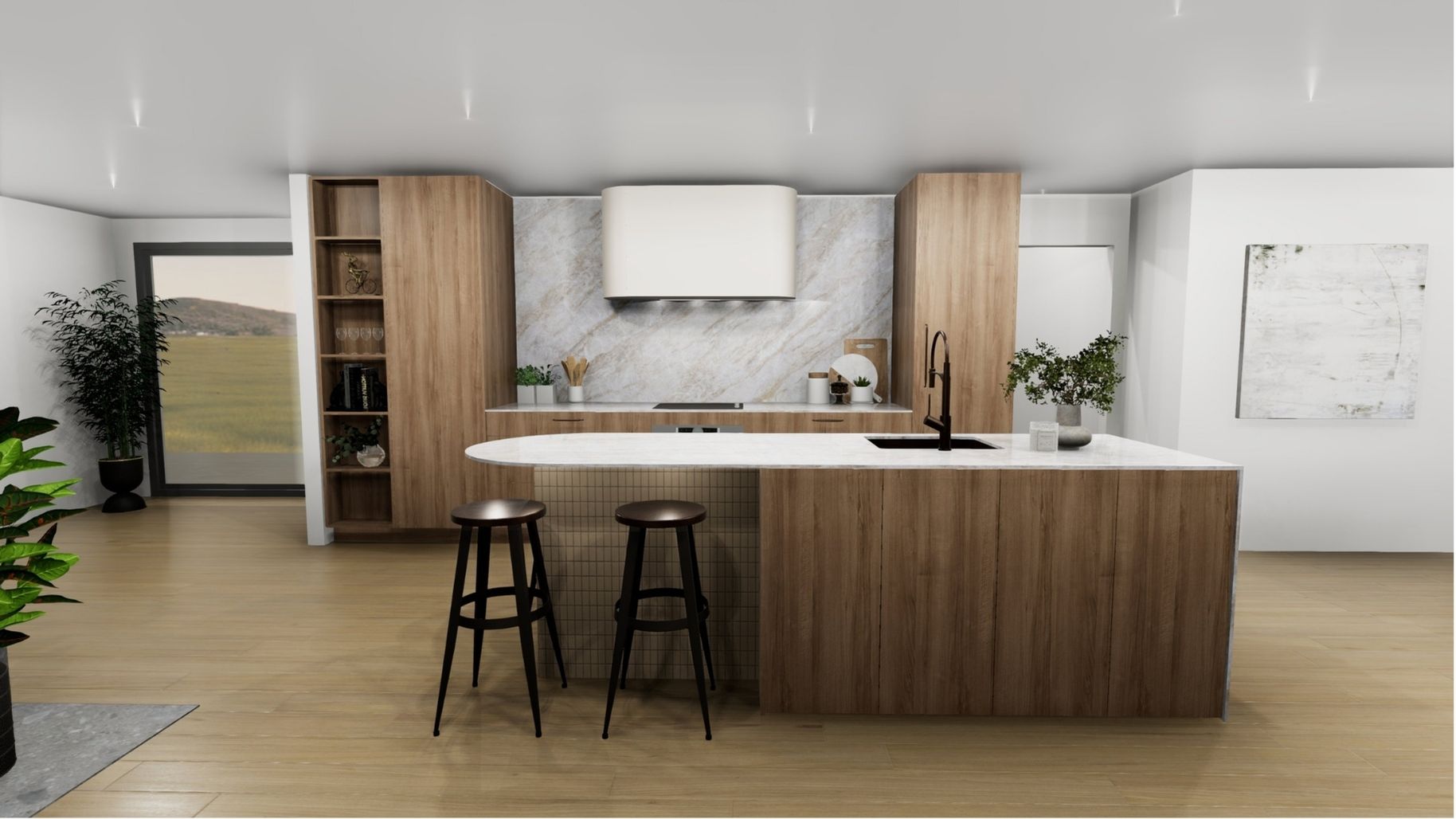 Set in a new subdivision of Halswell, this custom-built residence brings together bold materiality and considered family design. The striking street presence — a combination of brick veneer, vertical timber shiplap, and board and battern — sets the tone for a home that balances strength with warmth.